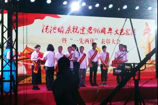 當(dāng)晚,湯池鎮(zhèn)舉辦了“一優(yōu)兩先”表彰大會,并舉行了慶祝建黨96周年的文藝會演。